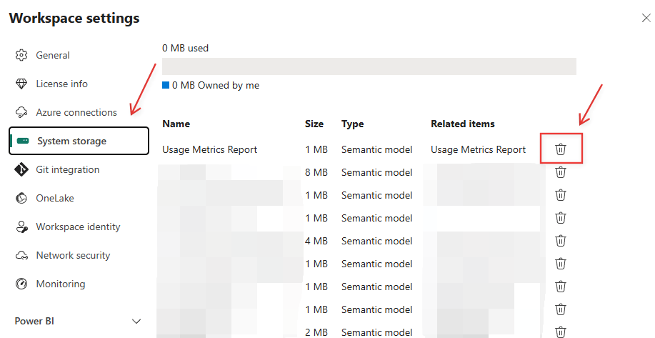 1 – First go to ‘Workspace settings’ -> ‘System Storage’ and delete the model (Because its is not visible in the UI)