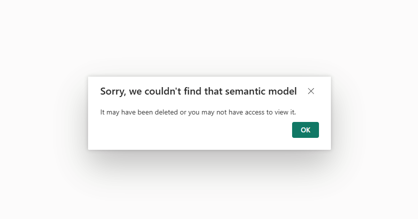 The Usage Metrics model isn’t visible in the workspace and by trying to access it via the report I got the error in Image 2: